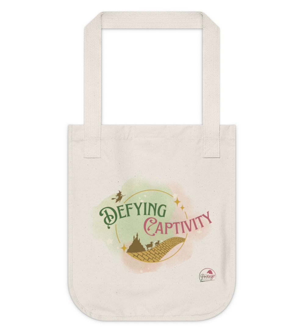 There is a definish chance that we'll be toting all of our schoolbooks to Shiz in this 100% cotton canvas tote bag.